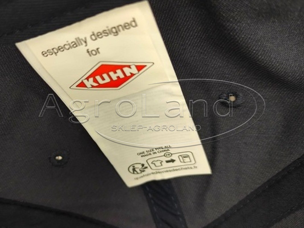 - Logotyp KUHN: Na froncie znajduje się starannie wykonane, haftowane logo marki KUHN, będące symbolem innowacji i niezawodności w rolnictwie.